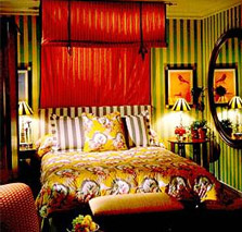 | ドラゴンゲートを目指して歩いている人が、なぜか足を止めて見入ってしまう建物があります。それがトリトン。チャイナタウンに近い為か、エントランスにはどことなく東洋的なデコレーションが施されているのですが、見物客のお目当てがそれじゃない。ここのロビーなのです。これはなんというか・・妙。トリトン=海神みちなみ、海をモチーフにした装飾ではありますが、退廃的というか、世紀末というか、そういうものにあこがれがちな若い芸術青年がかっこいいものを集めた!的な家具、調度品が配されているのです。 |